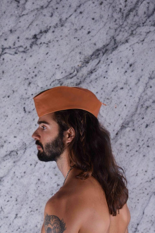 Vollständige Details anzeigenSMU Handmade Quality Leather Skin Garrison Hat Kepi in Tan Brown SMU1