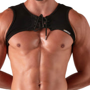Featuring an adjustable central lacing, this harness hugs the chest and sculpts the silhouette with a bold,