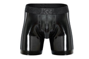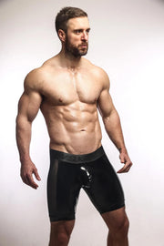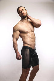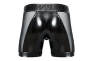 SUKREW Long Boxer Shorts Wet Look Sprint Mesh Sheer Side Panels Fetish Black 36