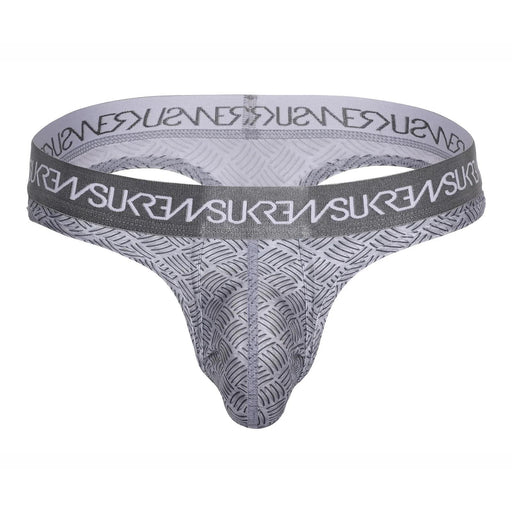 SUKREW Unlined Stretch Classic Thong With Large Contour Pouch in Checker Gray
