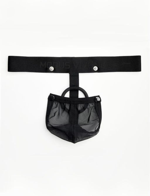 MODUS VIVENDI-Roomy pouch for comfy fit-Mat rubber pleasure ring with embossed 3D logo on -Nickel free, stud buttons fix the removable pouch on the waist-Sign...