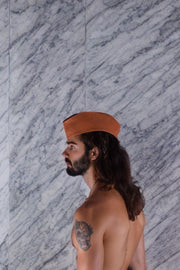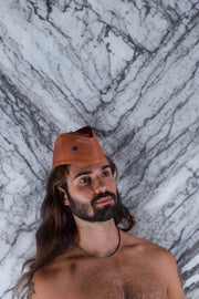 SMU Handmade Quality Leather Skin Garrison Hat Kepi in Tan Brown SMU1