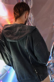 BREEDWELL Darkroom Hoodie Unique Zippers Heavy-Weight Knit Cotton Vest in Black
