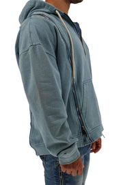 BREEDWELL Darkroom Hoodie Unique Zippers Heavy-Weight Knit Cotton Vest in Indigo