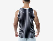Elevate your style with a timeless twist. This black and white tank top delivers a sleek, baseball-inspired design with classic stripes, all wrapped in a lightweight fabric made from recycled PET bottles